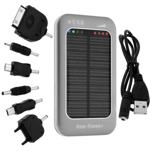 - Un chargeur solaire avec batterie rechargeable de 3500 mAh argenté